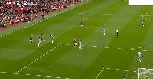 57' 达洛特左路突进,送出倒三角传中,姆伯莫低射破门,曼联2比1再度领先。