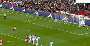 90+7' 阿马德·迪亚洛禁区内被拽倒,主裁观看录像后判罚点球,B费主罚命中,曼联3比2领先。