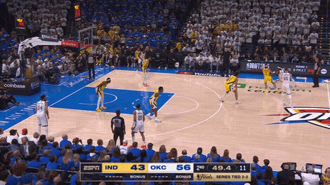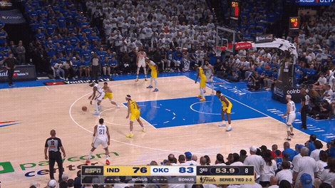 哈利伯顿也一直带着小腿的伤病坚持了几场,终于在雷霆的高压防守下进一步恶化。多尔特从一开场就对他严防死守,有球无球都全场玩命追,终于磨光了哈利最后的魔力。哈利一度在比赛中返回更衣室检查,虽然又重返赛场,但能明显看出小腿的不适影响着他的移动。